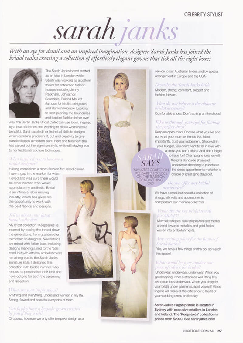 Founded luxury international bridal label, Sarah Janks. Working with French laces, heavy silks and designing our own embroideries and beading for our gowns, we grew to serve the US, UK and Australian markets supplying over 30 stores.